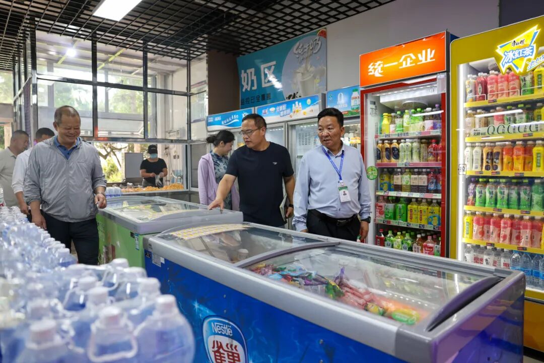 党委书记柏家渭,党委副书记、院长朱尤锋分别率队深入研和校区和峨山校区的学生食堂、超市、快递服务站等师生重点活动场所,展开全覆盖检查。在食堂区域,检查重点围绕食材原料的索证索票与进货查验记录是否规范完整展开,同时对大宗食材定点采购与贮存管理、食品加工场所的环境卫生、从业人员的健康管理、餐饮具的清洗消毒流程、每日食品留样制度的执行情况、冷藏冷冻设备的运行状态以及"四防"(防尘、防蝇、防虫、防鼠)设施的配备与效果等各个环节进行了逐一细致地查验。
