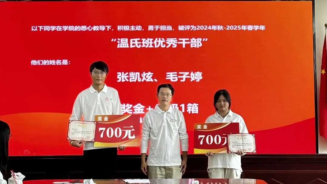 活动现场举行了“温氏班”表彰仪式,经校企双方评定,为优秀学员、优秀组长及优秀干部颁发荣誉证书与奖金。受表彰学生表示将珍惜荣誉,发挥表率作用,带动班级共同进步。