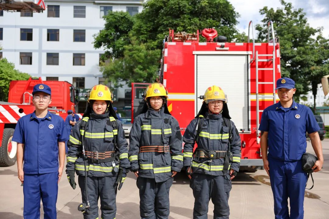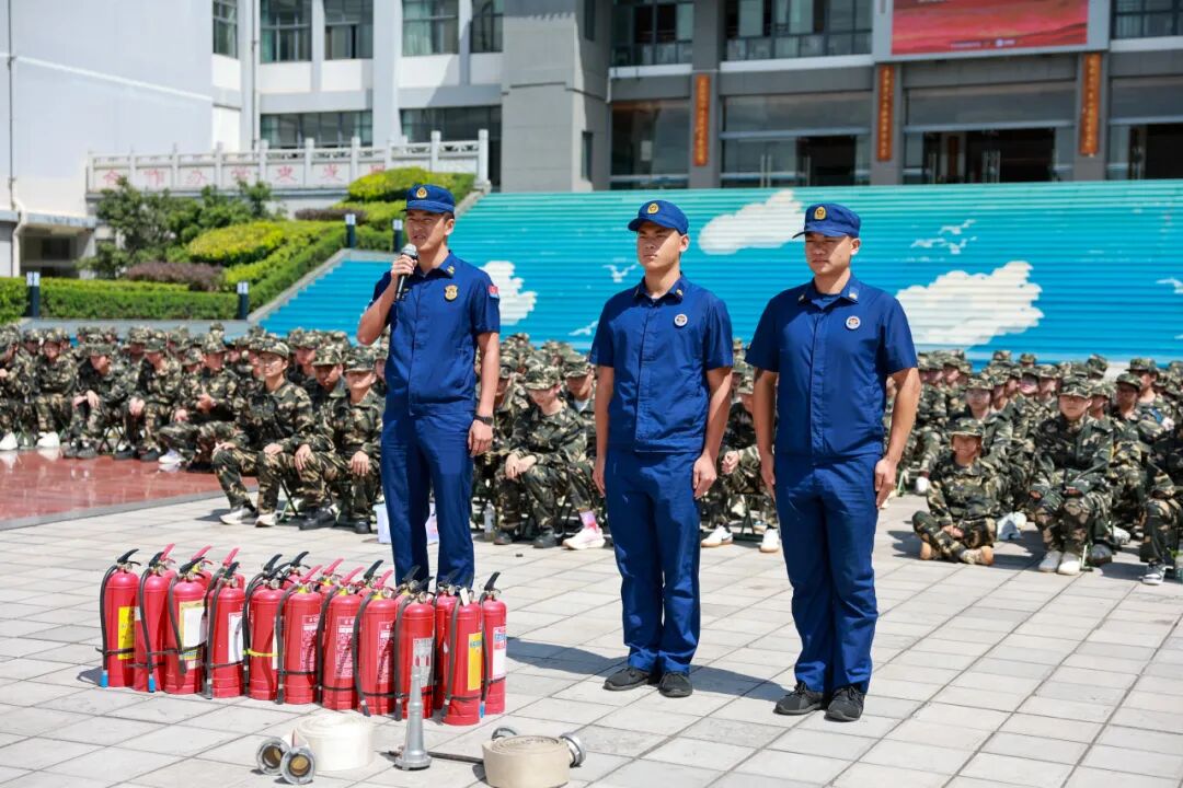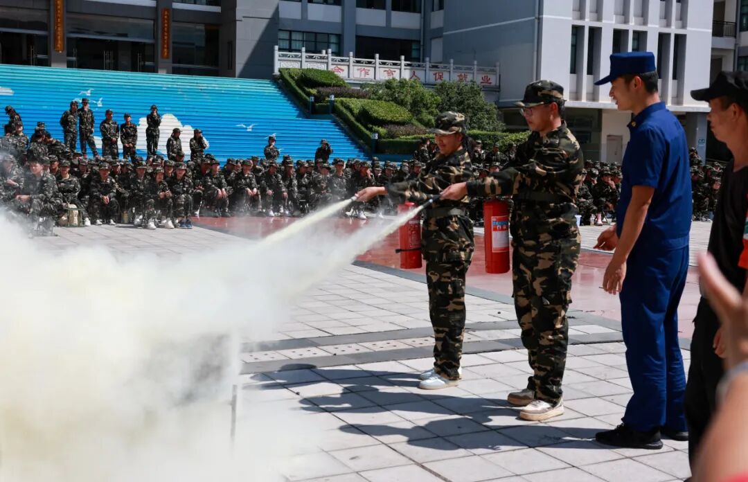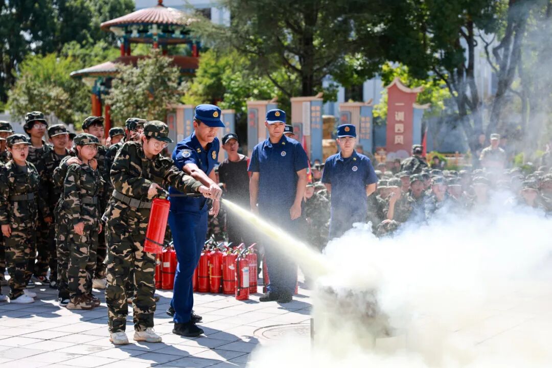 在消防员的指导下,学生亲自体验了使用灭火器灭火的过程,进一步加深了对消防知识的理解和灭火技能的掌握。